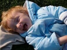 ...und nach dem Spielen bin ich total müde und mach es mir beim Papa bequem
