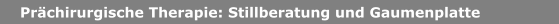 Bereits nach der Geburt wird die sog. Trink- oder Gaumenplatte eingesetzt. Verantwortlich dafür sind Chirurg/in und Kieferorthopädie. Mit der Platte wird eine künstliche Trennung von Mund- und Nasenraum erzielt, so dass die Nahrungsaufnahme erleichtert wird. Zwar können Spaltkinder lernen, auch ohne Gaumenplatte zu trinken, viel wichtiger als die ungestörte Nahrungsaufnahme ist jedoch die durch die Platte erzielte Normalisierung der Zungenfunktion.